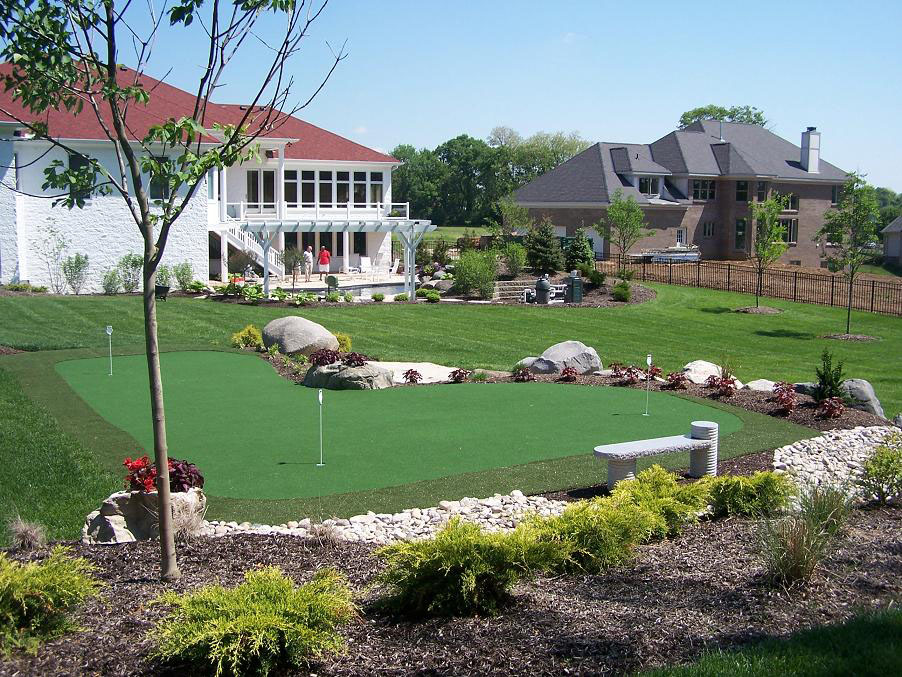 Real bent grass putting greens are very expensive to install and require expensive daily maintenance. Just ask a golf course superintendent or anyone who has owned a real grass putting green about the required maintenance.